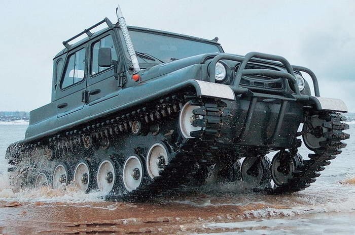 Скорее трактор с кузовом от УАЗ, вся система управления и ходовая гусеничного вездехода