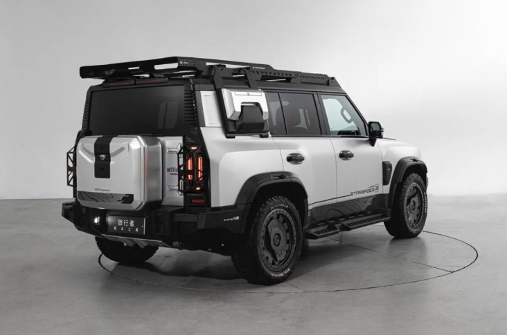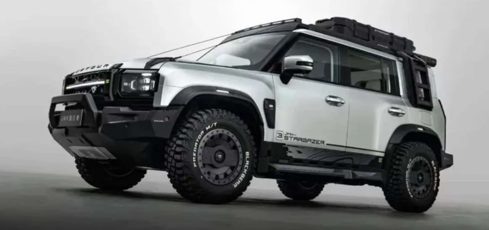 Внешне передний бампер нового кроссовера Jetour JMK Traveller очень напоминает Land Rover Discovery, а сбоку и сзади он почти полностью копирует современный Land Rover Defender.