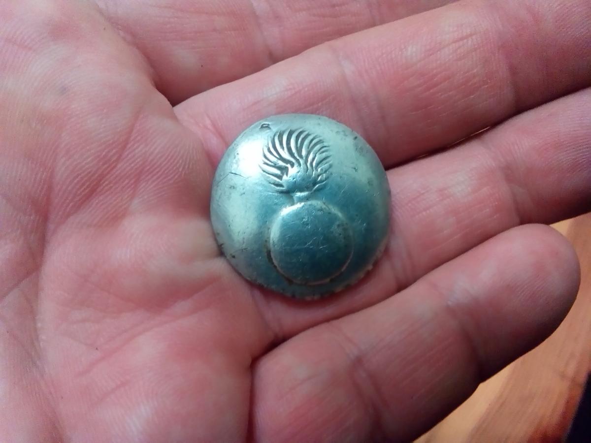 А в предыдущий выезд попалась пуговица гренадерского офицера , видимо сделанная по заказу , т.к. вылита из серебра .... Такой вот лес под Киевом )))