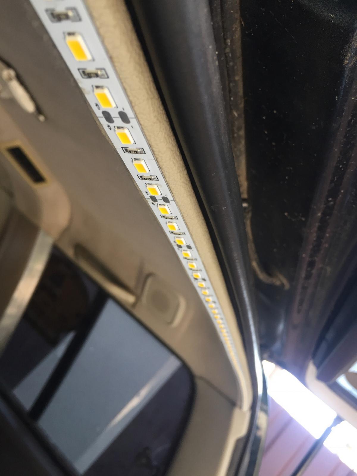 Сделал вот так. Светодиодные лента 12в. На алюминиевой пластине и двух стороннем скоче.