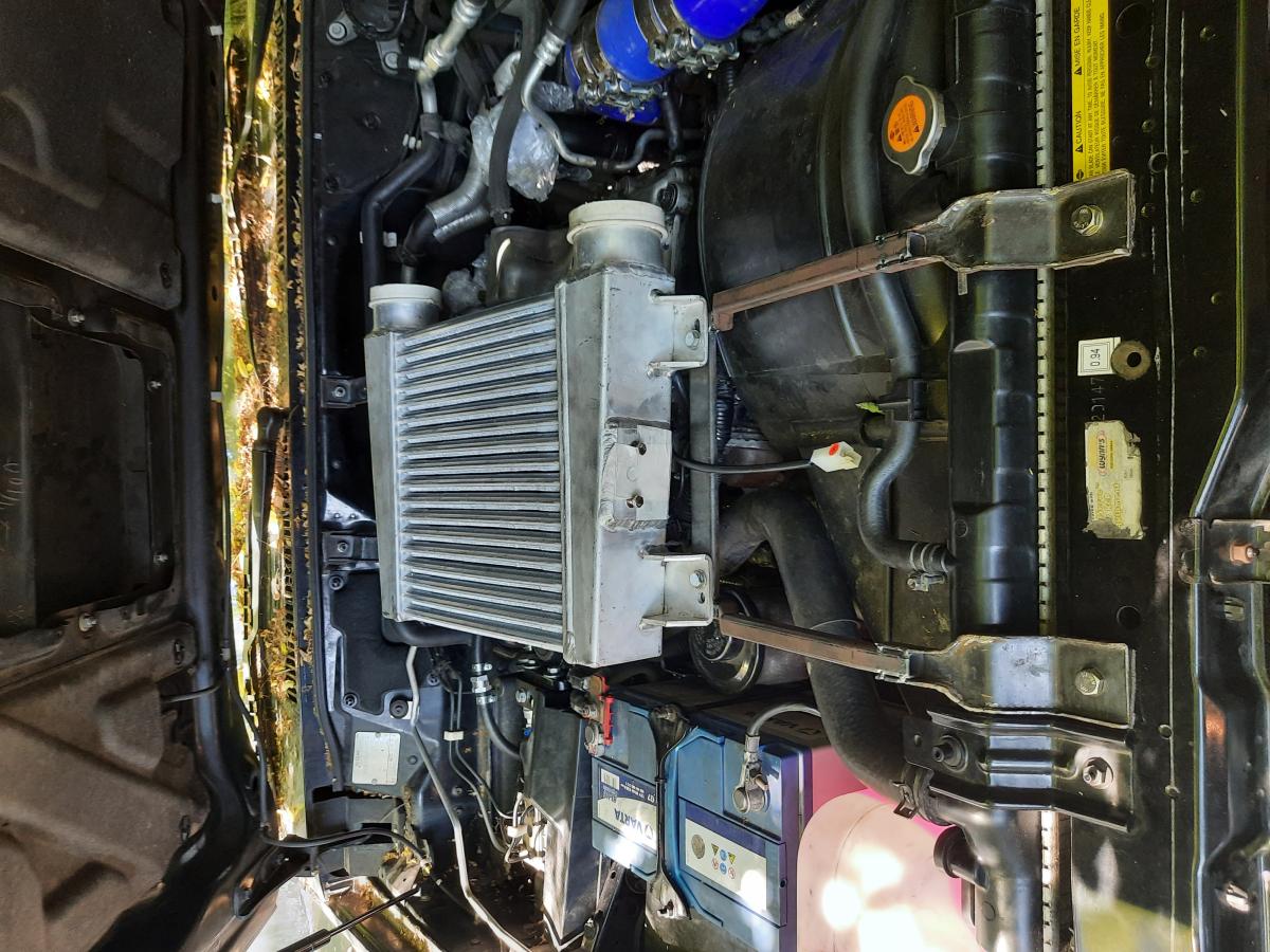 Всем привет. Откопал в телефоне фотки моего основного апгрейда для патрола - нормальный интеркулер на салазках, вместо того недоразумения, что на ZD30 влеплено. Причина замены, как у всех - текущий родной кулек.